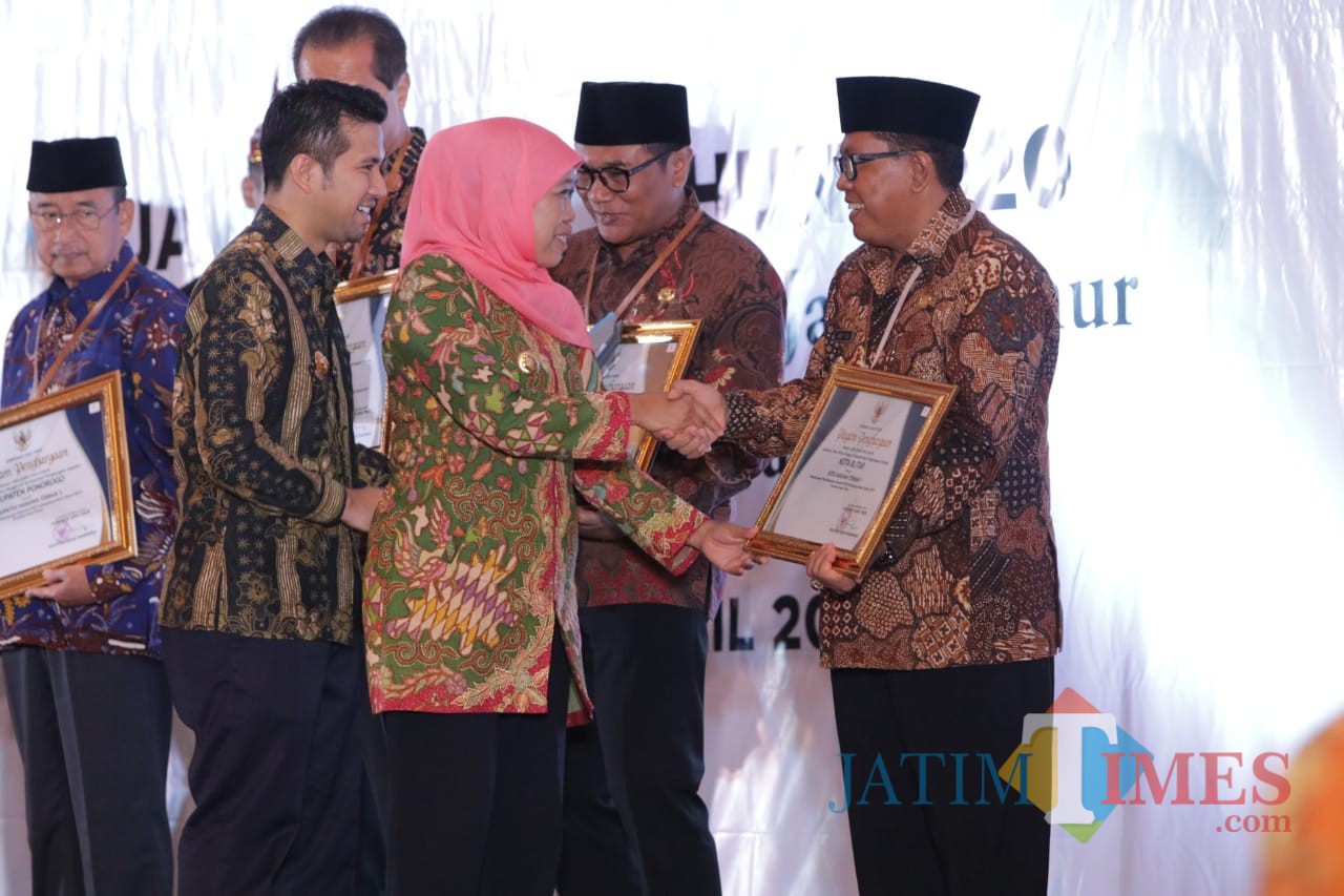 Penghargaan diserahkan oleh Gubernur Jatim Khofifah Indar Parawansa dan diterima Plt Wali Kota Blitar Santoso pada acara Musrenbang RPJMD  Provinsi Jawa Timur di Surabaya, Selasa (9/4/2019).