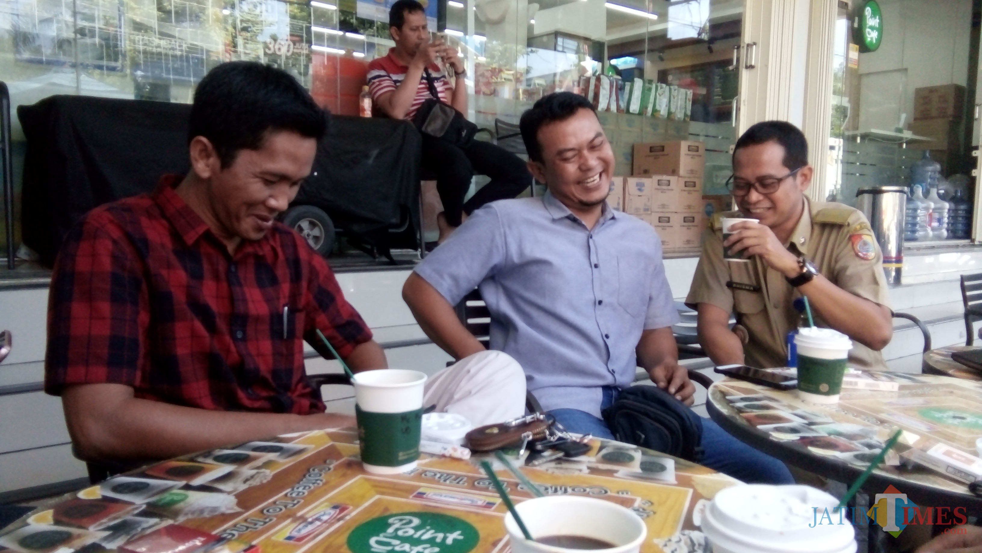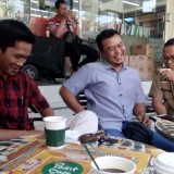 Shoim Abdullah (baju kotak-kotak) saat bersama sejumlah wartawan usai acara halalbihalal. (foto : Moh. Ali Makrus / Jatim TIMES)
