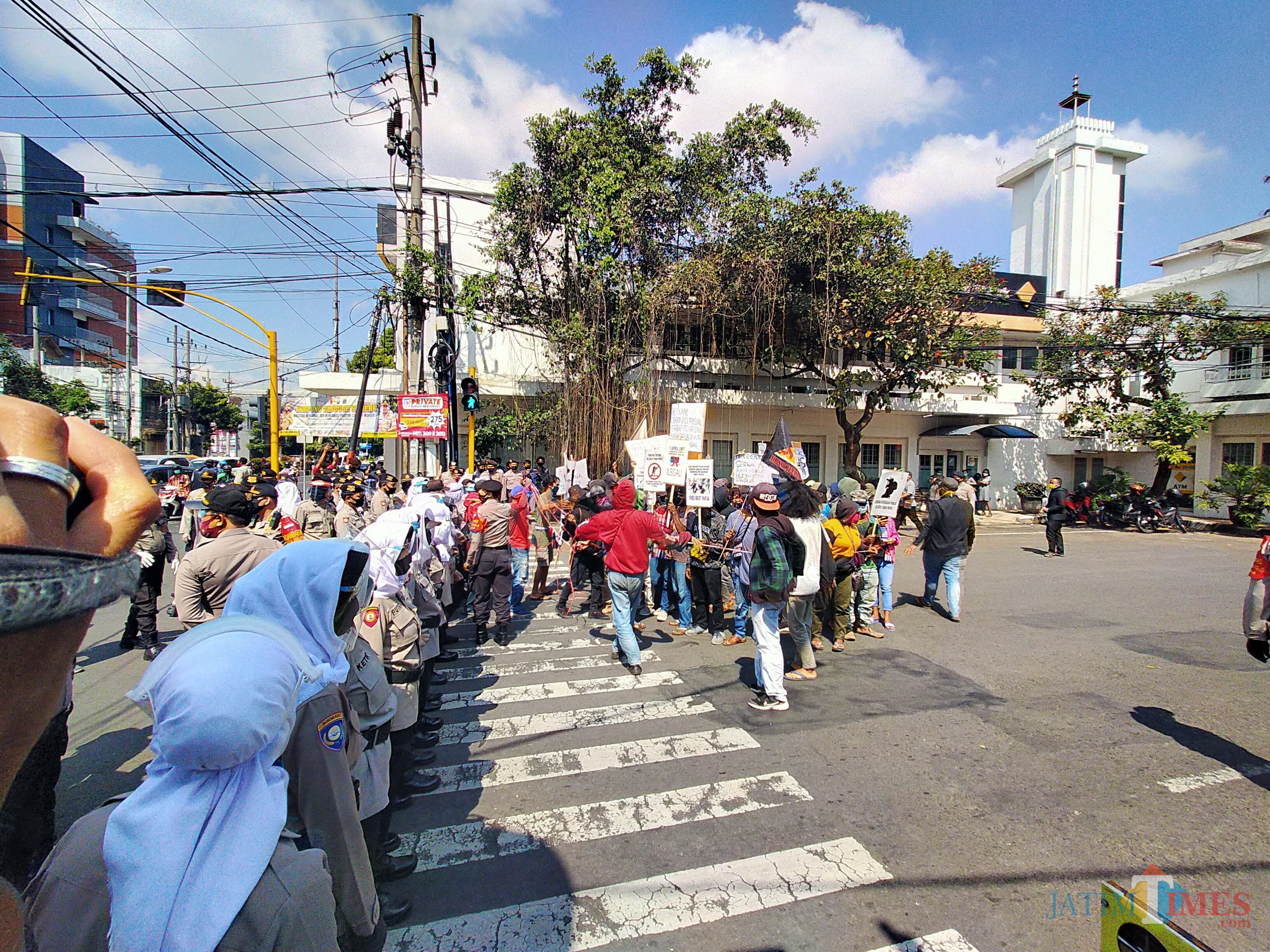 Suasana saat aksi demo mahasiswa Papua di perempatan Rajabali. (Anggara Sudiongko/MalangTIMES)