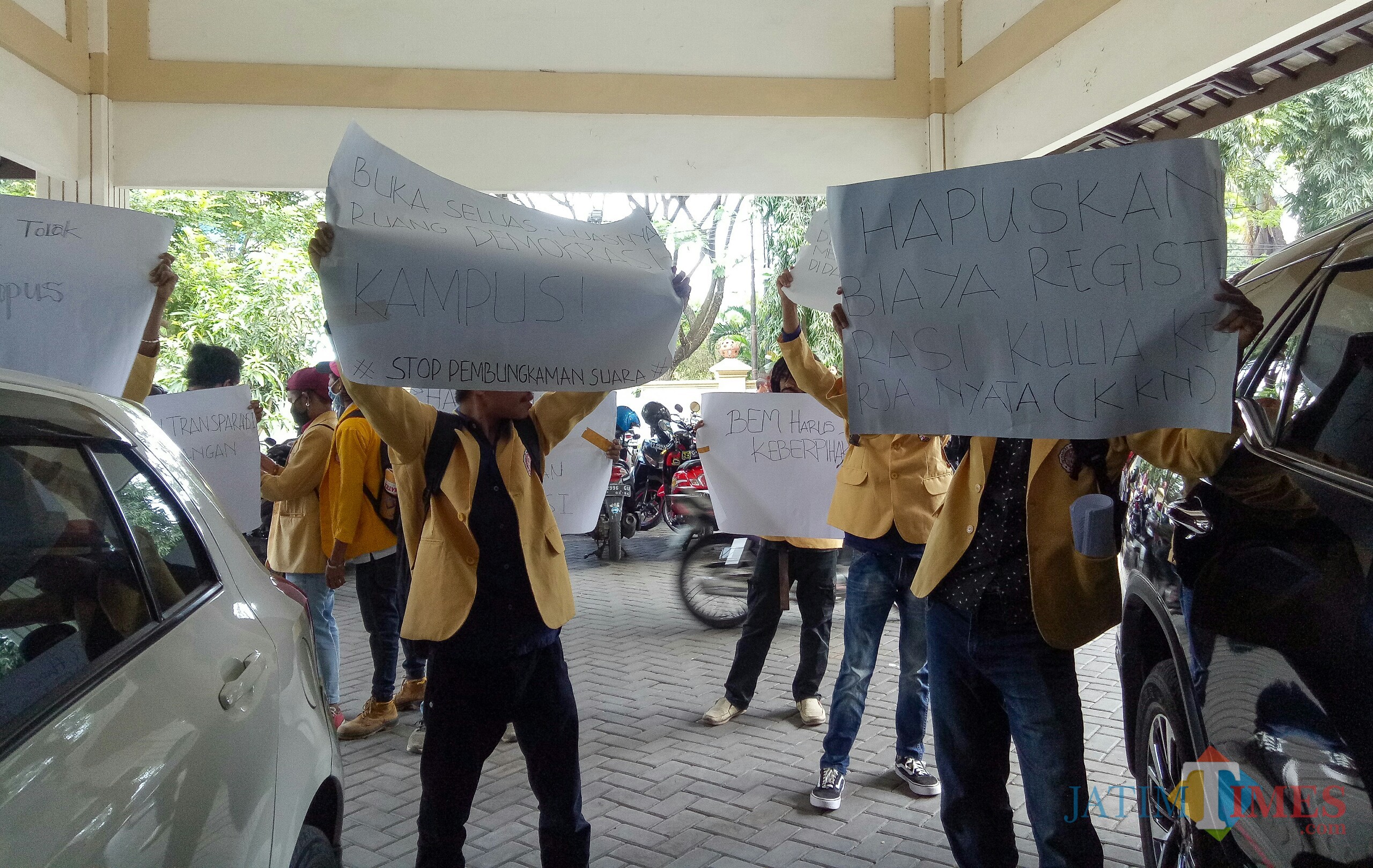 Dipantau media ini, sekitar pukul 09.30 WIB, kurang lebih 11 mahasiswa memakai almamater Wisnuwardhana (Unidha) berwarna kuning datang ke pintu masuk gedung dengan membawa poster-poster bertuliskan berbagai protes. Beberapa di antaranya seperti Mendukung Tolak UKT untuk Kampus Negeri #SOLIDARITAS KORBAN PANDEMI COVID-19, Berikan Transparansi Dokumen Keuangan Kampus, Hapus Uang Registrasi Bimbingan Skripsi, dan Hapuskan Biaya Registrasi Kuliah Kerja Nyata (KKN).