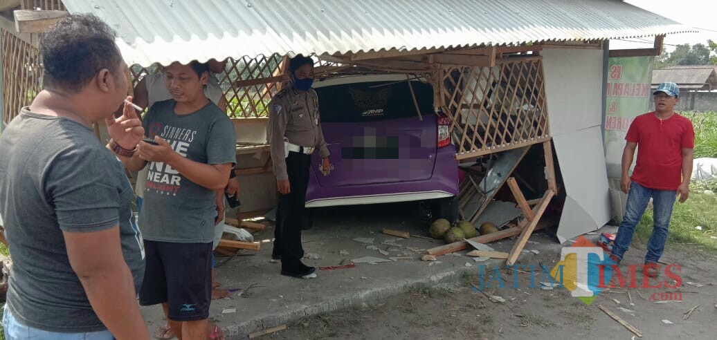 Sebuah minibus dilaporkan menabrak warung di Jalan Umum Desa Pasirharjo, Kecamatan Talun, Kabupaten Blitar, Rabu (15/7/2020). Minibus tersebut dikemudikan Agung (32) warga Kelurahan Sukorejo, Kota Blitar.