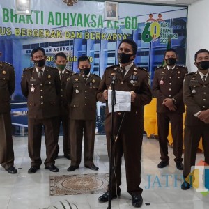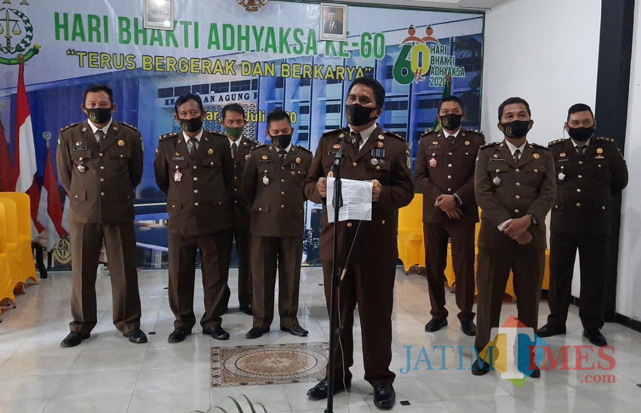 Kejari Blitar saat memberikan keterangan pers kepada awak media terkait penahanan pelaku penipuan travel haji.(Foto : Aunur Rofiq/BlitarTIMES)