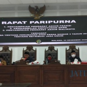 Rancangan Peraturan Daerah (Ranperda) Kota Malang tentang Perubahan Atas Perda Nomor 3 Tahun 2015 Tentang Jasa Umum telah disepakati oleh DPRD Kota Malang. Seluruh fraksi yang duduk sebagai wakil rakyat itupun menerima perubahan tersebut dan memberikan beberapa catatan dalam agenda paripurna yang diselenggarakan pada hari ini, Selasa (22/12/2020).