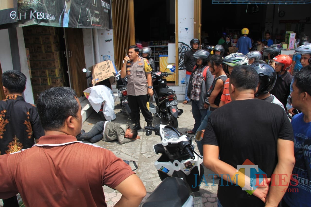 "Dia mau melarikan diri menabrak seorang bapak tua. Kemudian saya panggil seluruh jajaran polsek dan polres. Bapak tuanya kami selamatkan kita bawa ke Rumah Sakit Mardi Waluyo. Kemudian saya mengamankan pelaku yang diduga jambret itu," jelas Kapolres Blitar Kota AKBP Adewira Negara Siregar.