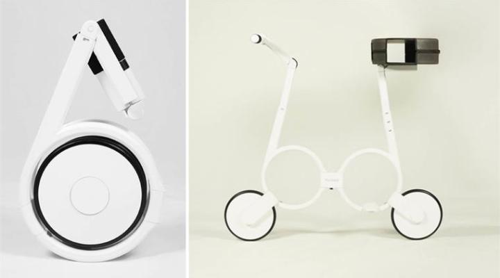 Sepeda elektrik yang berbentuk layaknya kaca mata ini memiliki sebuah konsep yang unik. Sepeda itu bisa dilipat layaknya sebuah kaca mata.