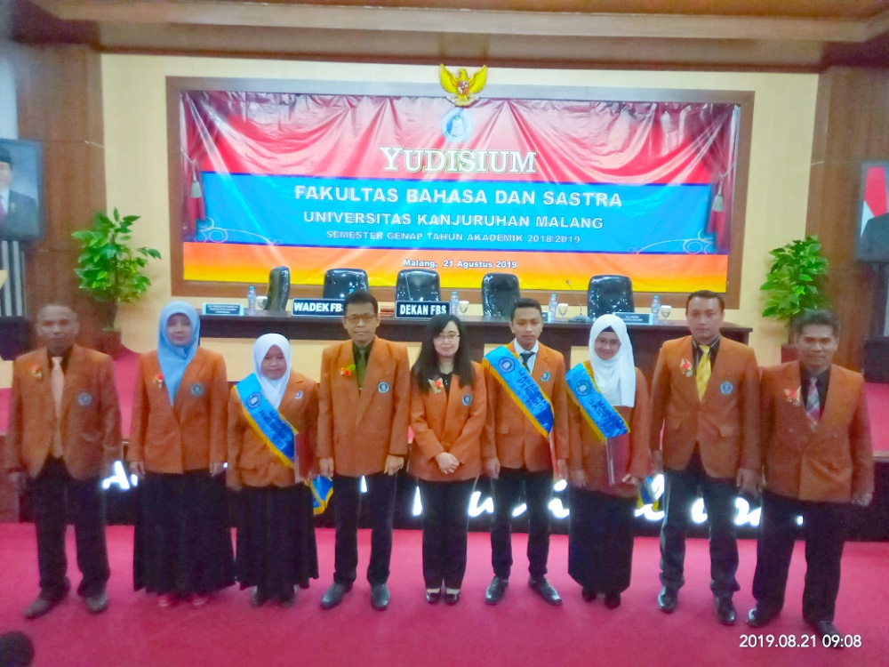 Wajah-wajah ceria, nampak menyelimuti 154 mahasiswa Universitas Kanjuruhan Malang (Unikama). Dengan mengenakan setelan kemeja, dilengkapi jas almamater kebanggaan mereka 154 mahasiswa tersebut mengikuti yudisium Fakultas Bahasa dan Sastra, semester genap tahun akademik 2018/2019 di Auditorium Multikultural Unikama (21/8/2019).