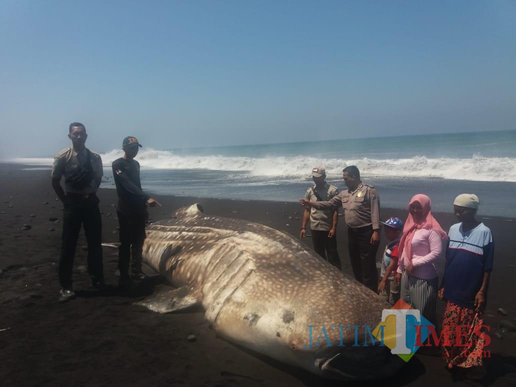 Inilah ikan paus sepanjang 6 meter yang terdampar di Pantai Selatan Lumajang (Foto : Moch. R. Abdul Fatah / Jatim TIMES)