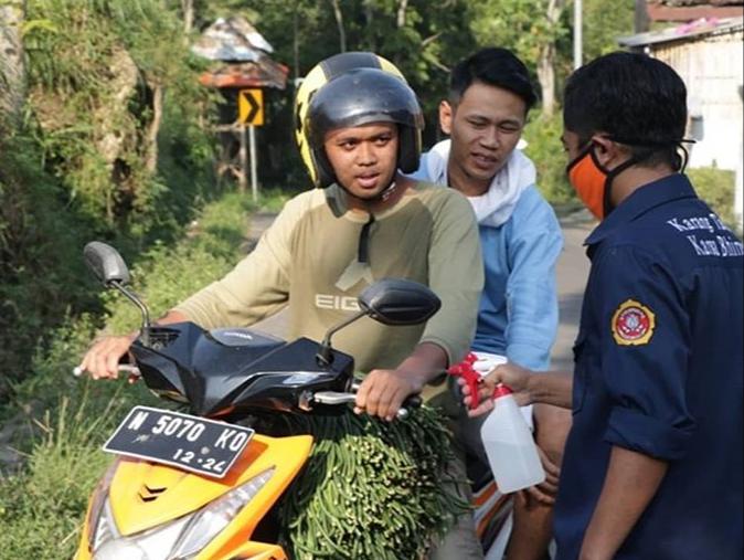 Setiap pedagang atau pengepul sayur saat masuk di shelter tersebut akan dilakukan penyemprotan disinfektan, mulai dari kendaraan, badan, tas, handphone, dompet, dan sebagainya.