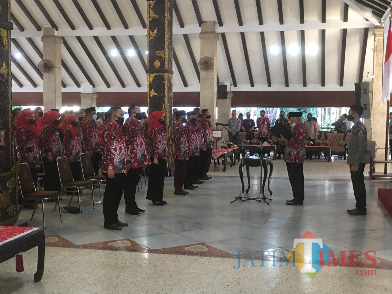 Suasana pelantikan Kades di Pringgitan Pendapa Agung Kabupaten Malang (Foto : Ashaq Lupito / MalangTIMES)
