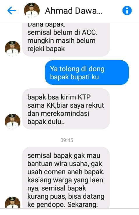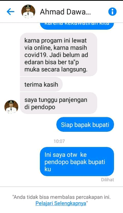 "Klo admin nya di bayar setelah dapat pinjaman apa sebelum dpt? Bpk bupati ku," tanya salah satu yang dihubungi akun yang mengatasnamakan Bupati Madiun tersebut.