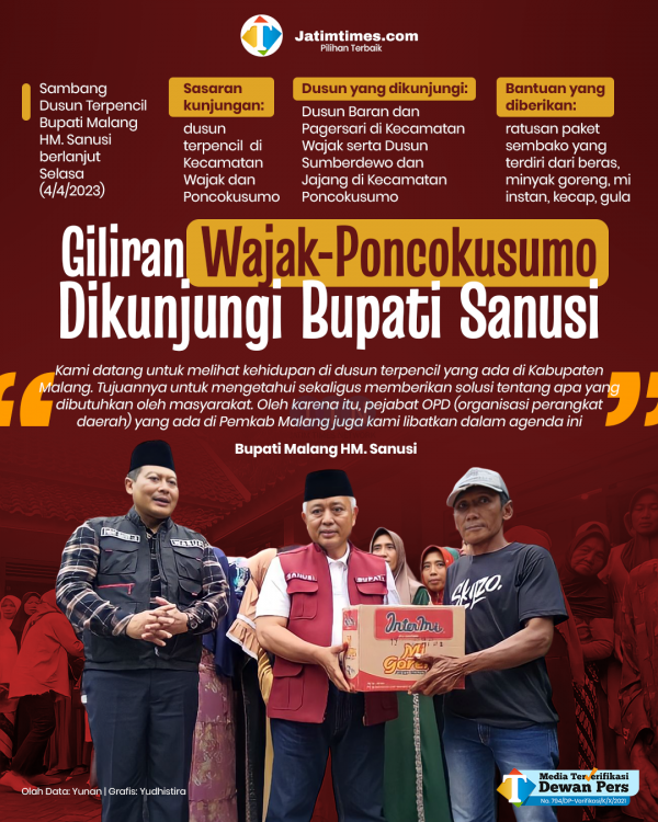 JATIMTIMES - Pemerintah Kabupaten (Pemkab) Malang kembali melaksanakan agenda Sambang Dusun Terpencil. Agenda pemerintahan yang berlangsung pada Selasa (4/4/2023) ini menyasar beberapa dusun terpencil di Kecamatan Wajak dan Poncokusumo, Kabupaten Malang.
